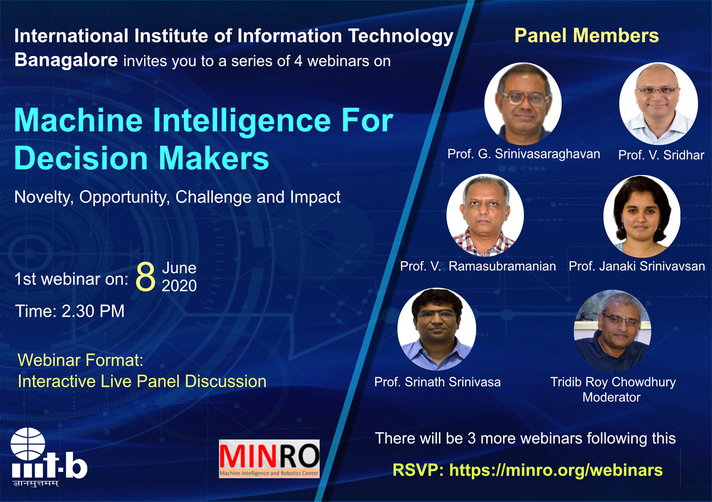 Join IIIT Bangalore’s eminent faculty in an interactive panel discussion to discuss interesting issues facing decision-makers in government, industry, education to better appreciate the opportunities offered by machine Intelligence and become aware of the pitfalls that need to be avoided.