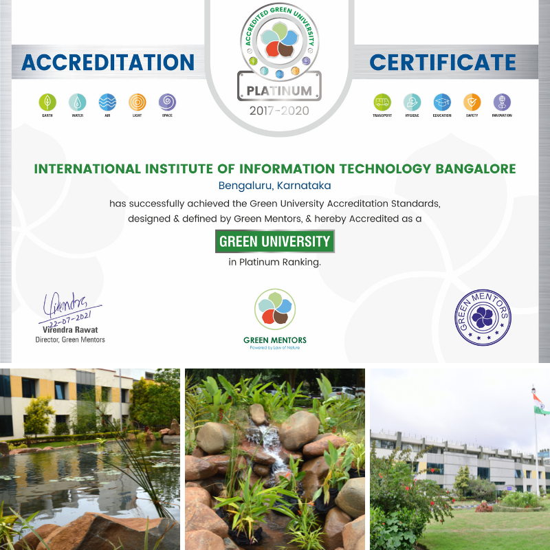 IIIT Bangalore is now accredited as Green University in Platinum category by Green Mentors.