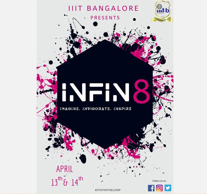IIIT Bangalore proudly presents the 4th iteration of its techno-cultural fest Infin8. With over 15 live events and performances, Infin8 2019 is going to be bigger and better than ever. We are debuting our flagship event, IGT (Infin8 Got Talent) and the fest is scheduled to happen on 13 and 14 of April. Make sure you take part in the online contests leading up to the event.